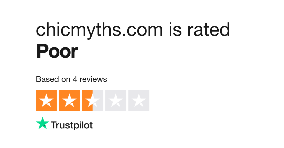 Web very bad trust index. Do you agree with chicmyths.com's trustscore? The domain name is very recent. Even though they have cute clothes. Web 15% off for 2nd item30% off for 3rd item50% off for 4th item.